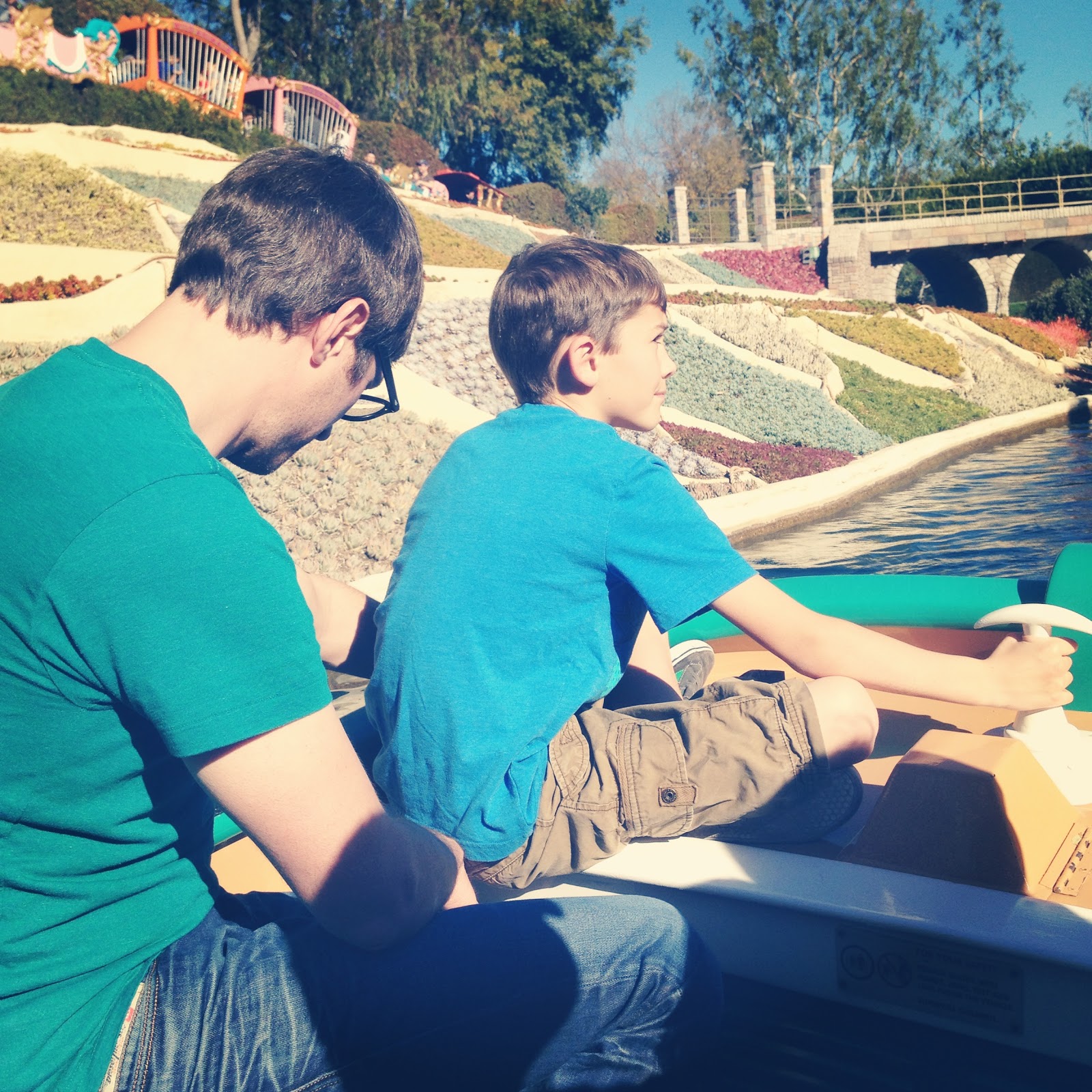 | Elliott got to sit on the front of the boat for the Storybook Land ride. |